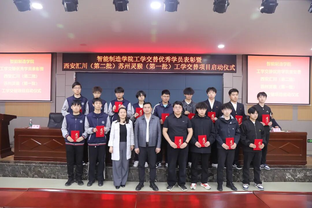 4月2日,智能制造学院举办工学交替优秀学员表彰暨西安汇川(第二批)、苏州灵猴(第一批)新项目启动仪式。仪式隆重表彰了在首批实践中荣获“优秀学员”与“卓越实习生标兵”的学子,他们的卓越表现赢得了合作企业西安汇川技术有限公司的高度认可。