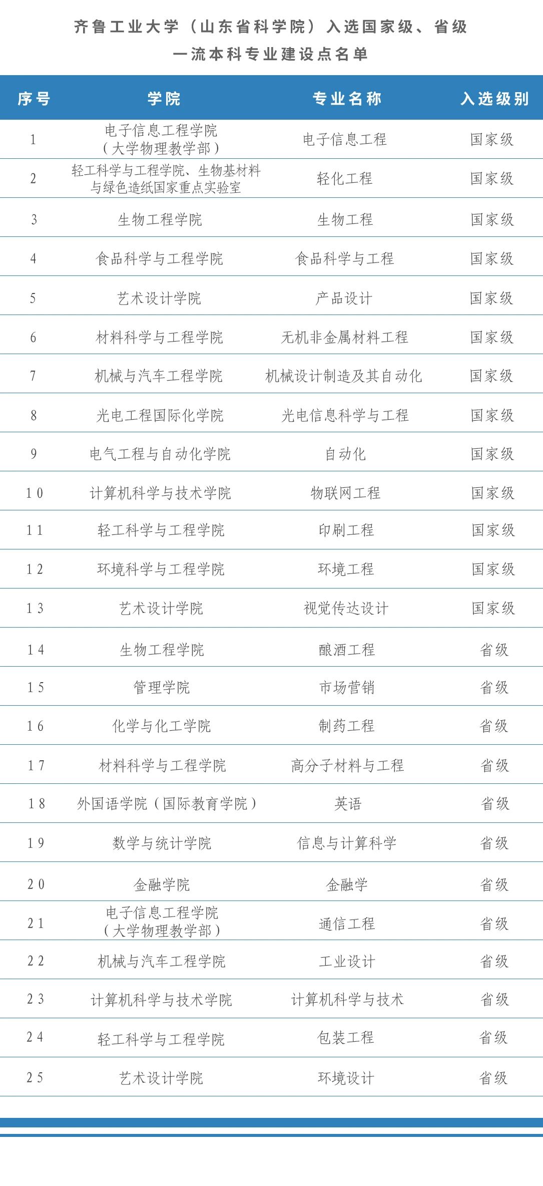 近日,《教育部办公厅关于公布2020年度国家级和省级一流本科专业建设点名单的通知》(教高厅函[2021]7号)印发,正式公布了 2020年度一流本科专业建设点名单。齐鲁工业大学(山东省科学院)13个专业获批国家级、省级一流本科专业建设点,其中机械设计制造及其自动化、光电信息科学与工程、自动化、物联网工程、印刷工程、环境工程、视觉传达设计等7个专业获批国家级一流本科专业建设点,光电信息科学与工程、通信工程、工业设计、计算机科学与技术、包装工程、环境设计等6个专业获批省级一流本科专业建设点。