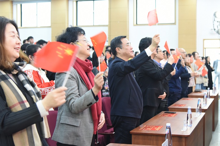 中国教育在线讯 4月13日下午,由中共青岛市委宣传部、中共青岛市委教育工委主办,青岛演艺集团歌舞剧院、青岛科技大学承办,青岛科技大学党委宣传部、校团委、艺术学院协办的“永远跟党走”青岛市高雅音乐进校园在青岛科技大学崂山校区正式启动,同时举行了青科大党史学习教育主题歌会,青岛科技大学党委书记马连湘,青岛演艺集团副总经理、青岛市歌舞剧院有限公司董事长张乐群,青岛科技大学党委副书记张淑华,青岛科技大学党委常委、副校长吕万翔,青岛科技大学党委常委、统战部部长张洪坤,中共青岛市委宣传部文艺处二级调研员于颖,青岛科技大学党史学习教育领导小组成员等参加活动。