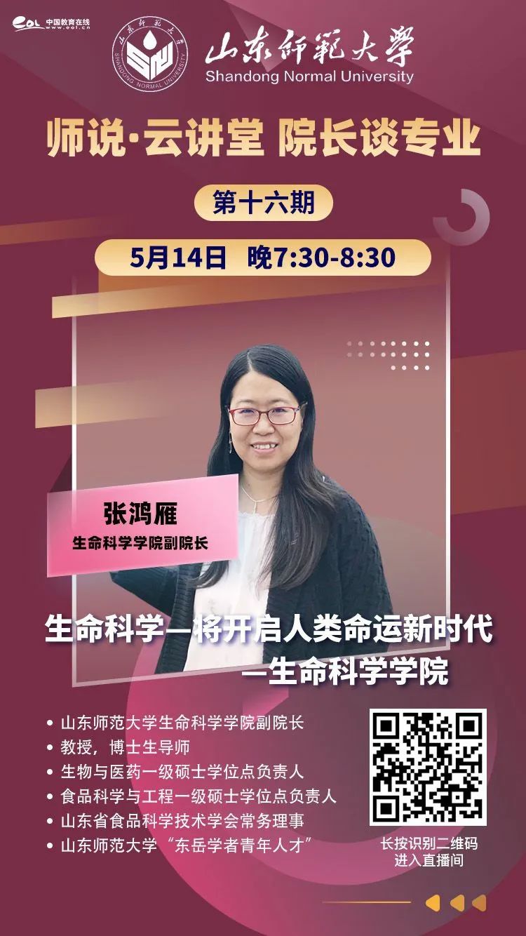 本周,我们隆重邀请了生命科学学院张鸿雁院长、地理与环境学院王成新院长、心理学院李寿欣院长,带你去感受不同学院学科的文化魅力和深厚底蕴。