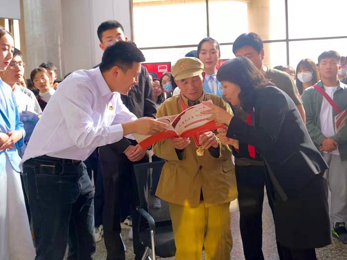 王传柱老人的深情讲述让现场的同学们激情澎湃,数次响起热烈地掌声。同学们表示,在现场有幸亲耳聆听老兵的回忆,非常震撼,老一辈的革命家用激情和热血为我们开创了和平盛世,我们青年一代要传承革命精神,要用信仰之光照亮奋斗之路,在党史学习中获得前行的动力,在弘扬精神中攻坚克难,在传承血脉中开拓前行。