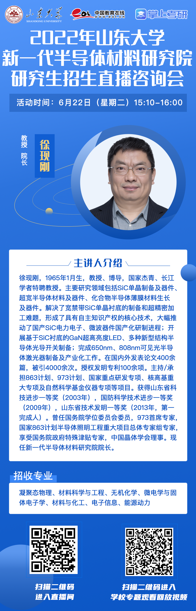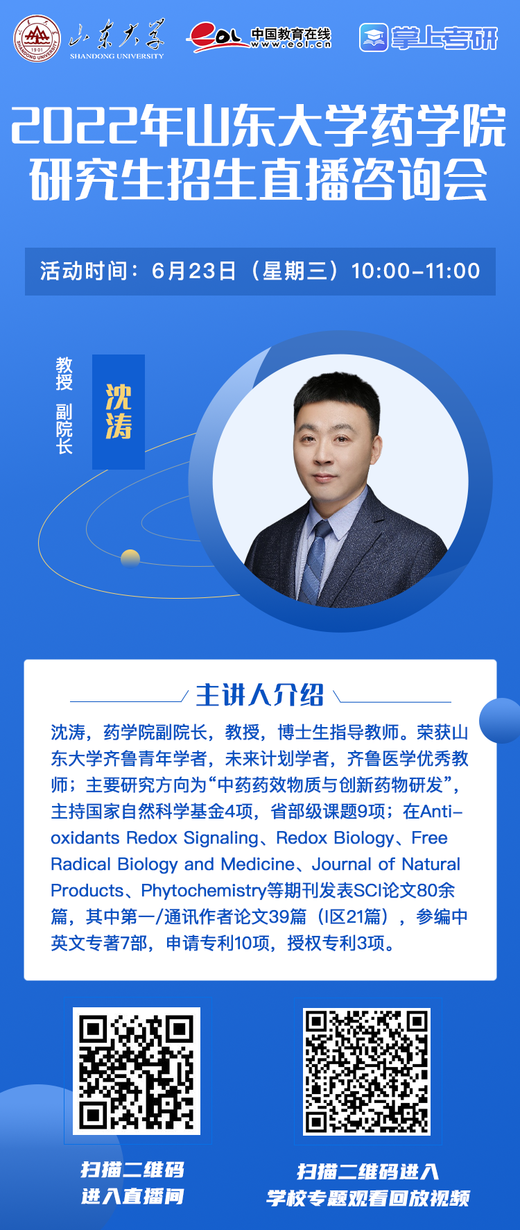 山东大学老师将进入直播间,为考生带来干货满满的线上招生宣讲,全面介绍学院概况、专业特色、人才培养、奖助学金体系、就业前景等,帮助大家了解更多研究生招生与培养信息。