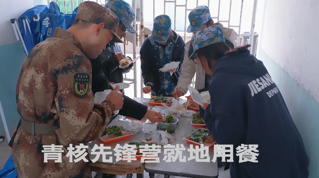 他们,是校园中一道红辰。物资筹备运输、场地秩序维持、老人病弱需要帮助……哪里有需要哪里有他们的身影,队伍井然有序,动作干净利落,行动雷厉风行,“青核先锋营”旗帜如同军旗一般挥舞在校园战疫一线。他们既有从军营退伍的钢铁战士,也有准备参军报国的热血青年,共同的信念让他们聚在一起。凌晨五点鏖战至深夜,腰酸腿疼、嗓子沙哑、无法按时吃饭已成常态,但无一人退缩抱怨,“退伍不褪色,退役不褪志”是他们践行的铮铮誓言。聚微光成星海,守初心如磐石,不管是否身披戎装,他们始终听从党和人民的召唤。