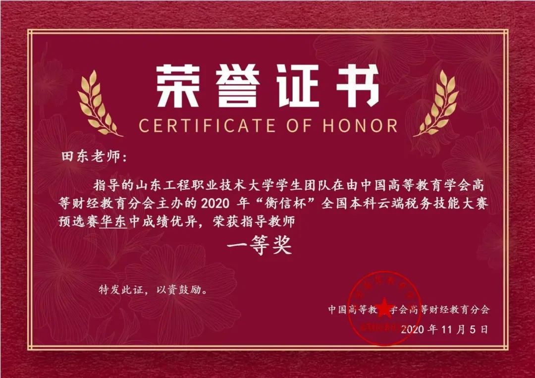 山东省“福思特杯”大学生会计税务技能大赛二等奖和优秀团队奖