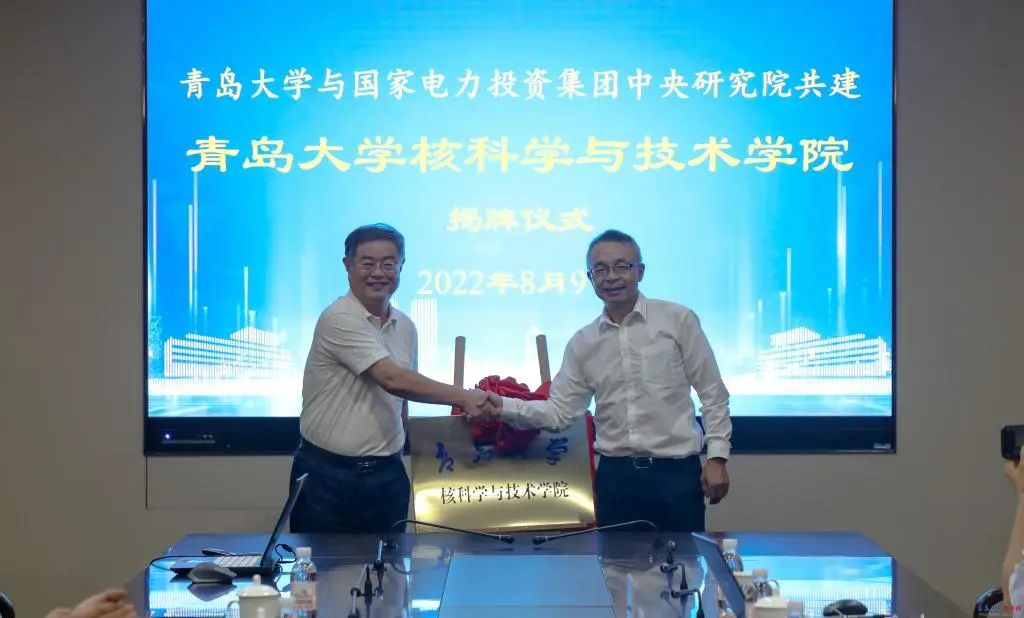 8月9日,青岛大学与国家电力投资集团中央研究院共建核科学与技术学院揭牌仪式在会议中心致远厅举行。国家电投集团中央研究院党委书记、董事长范霁红,青岛大学校长夏东伟出席会议并讲话。仪式上,范霁红与夏东伟共同为青岛大学核科学与技术学院揭牌。