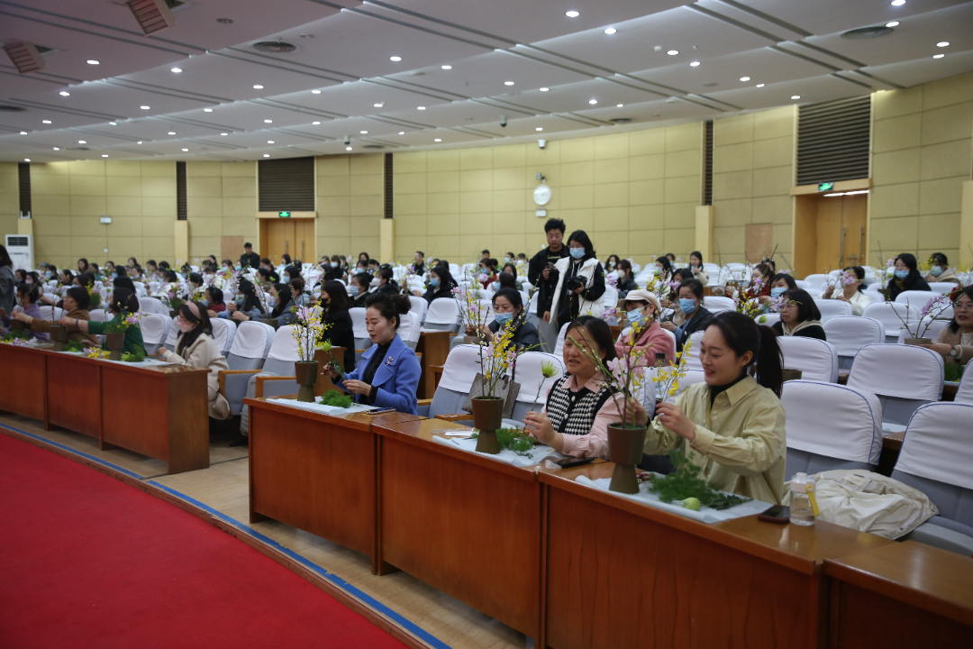 一花一世界,一叶一乾坤。3月3日下午,生命科学学院教师、中国插花协会传统插花专家刘旭老师,为女教职工作《东方插花艺术赏析》专题讲座,讲授选花、养护、颜色搭配、造型等艺术插花技巧,讲解各种花卉所蕴含的花语和祝福,现场指导女教职工进行创新插花DIY活动。