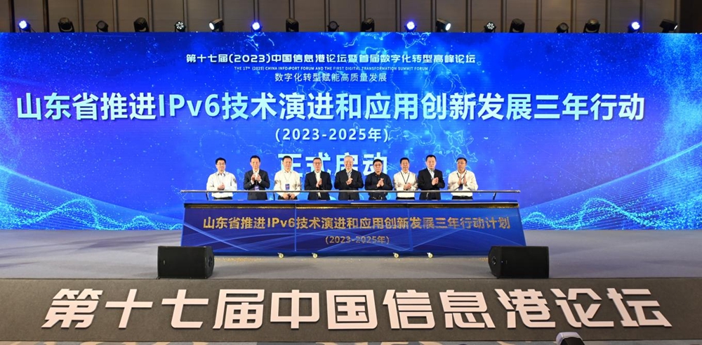 5月25日,在青岛开幕的第十七届(2023)中国信息港论坛暨首届数字化转型高峰论坛上,由山东省通信管理局、中共山东省委网络安全和信息化委员会办公室、山东省发展和改革委员会、山东省教育厅、山东省工业和信息化厅、山东省交通运输厅、山东省大数据局、山东省能源局、中国人民银行济南分行九部门联合印发的《山东省推进IPv6技术演进和应用创新发展三年行动计划(2023-2025年)》(以下简称《行动计划》)正式发布,工业和信息化部总工程师赵志国、山东省副省长、省政府党组成员周立伟等领导出席发布仪式。山东省发布的行动计划是继今年4月工信部等八部门联合印发《关于推进IPv6技术演进和应用创新发展的实施意见》后,全国首个落地的省级“IPv6+”政策,将全面推进山东“IPv6+”技术应用和产业创新升级,做强做大做优山东数字经济,助力新旧动能转换,推动绿色低碳高质量发展。