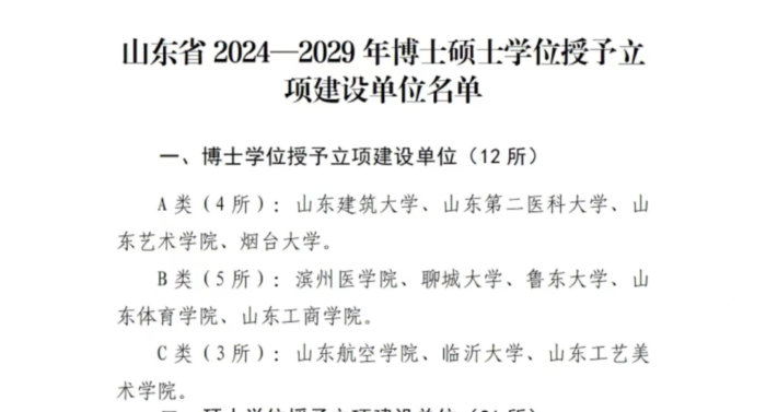 近日,山东省人民政府学位委员会下发《关于公布2024—2029年博士硕士学位授予立项建设单位的通知》(鲁学位〔2024〕7号),山东艺术学院获批博士学位授予立项建设A类单位。