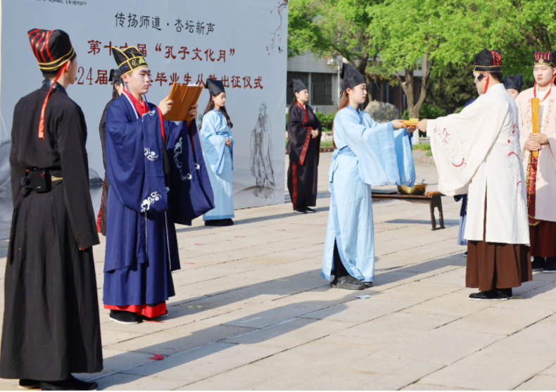 曲阜师范大学第十六届“孔子文化月”启动仪式暨2024届师范类毕业生从教出征仪式在孔子文化广场举行。曲阜师范大学党委书记邢光,党委副书记卢国强,党委常委、宣传部部长孙祥广出席仪式。历史文化学院、教务处、学生工作处、研究生处等部门相关负责人参加活动。
