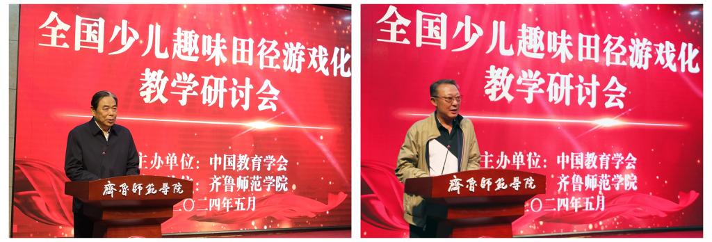 郑秀文首先致辞,他代表齐鲁师范学院全体师生员工,向所有参加此次研讨会的领导、老师们表示衷心感谢和热烈欢迎。他从历史沿革、人才培养、办学特色等方面介绍了学校的基本情况。郑秀文表示,近年来,学校深刻理解体育教育的新时代内涵和以幼儿为中心的课程建设理念,组建体育游戏教学团队,深入小学、幼儿园实践调研,不断推进专业课程建设和育人模式改革,形成具有可推广、可借鉴的幼儿体育游戏教学模式,并在济南、济宁等地多所幼儿园开展体育游戏试点园建设。本次研讨会是推动少儿田径教育向趣味化、游戏化发展的重要举措,也为学校持续推进相关课程改革提供了有力借鉴。下一步,学校将继续发挥面向基础教育的平台优势,对接少儿体育教育发展需求,打通整合优质教育资源,围绕少儿体育教育强化学术研究,产出一批高质量的学术成果与教育教学成果,以实际行动为落实教育优先发展战略、建设教育强国付出积极努力,作出应有贡献。
