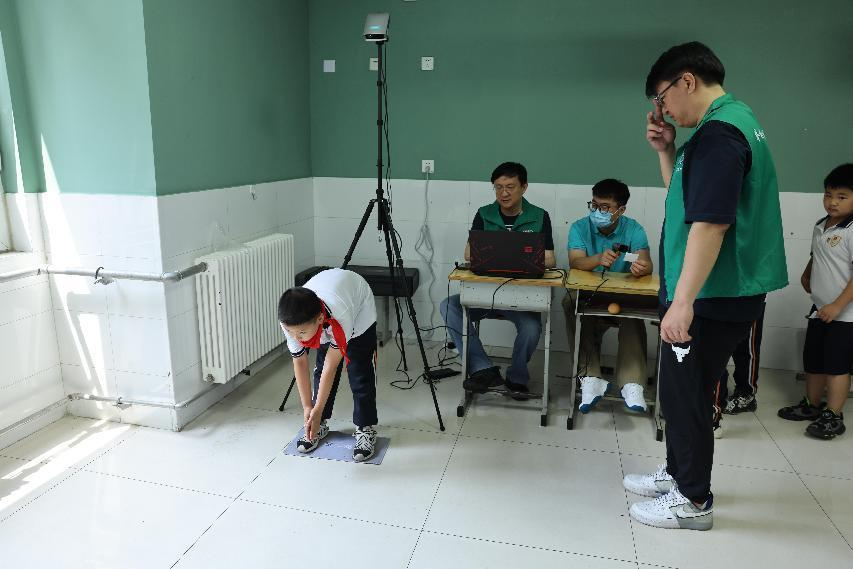 启动仪式后,山东体育学院体育科学研究院副教授刘军对现场脊柱侧弯高风险学生进行了运动功能评估并给出了针对性的运动预防方案。山东体育学院体育科学研究院副教授王秀秀进行了以“体育锻炼对脊柱侧弯的预防作用”为主题的科普讲座,教师聂祥坤、韩洁、张士花带领研究生联合山东省中医药大学第二附属医院及省、市疾病预防控制中心相关专家对段店小学850名学生进行了脊柱侧弯筛查和足底压力测试。