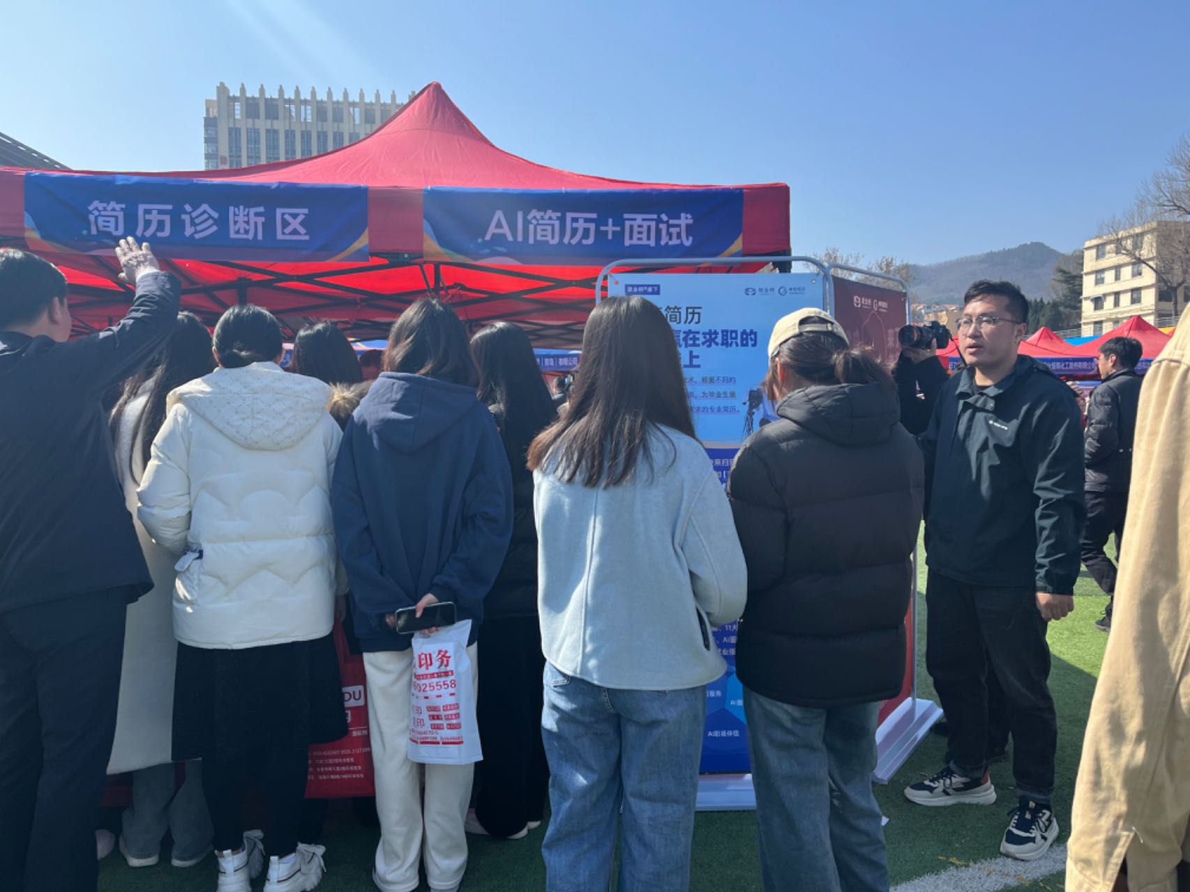 现场还设立了就业桥·AI智能简历诊断区,通过在线制作简历、简历一键生成、简历优化、自动排版等功能,短短几分钟就让现场学生轻松获得专属简历,省时又省力,连辅导员老师都表示很实用。