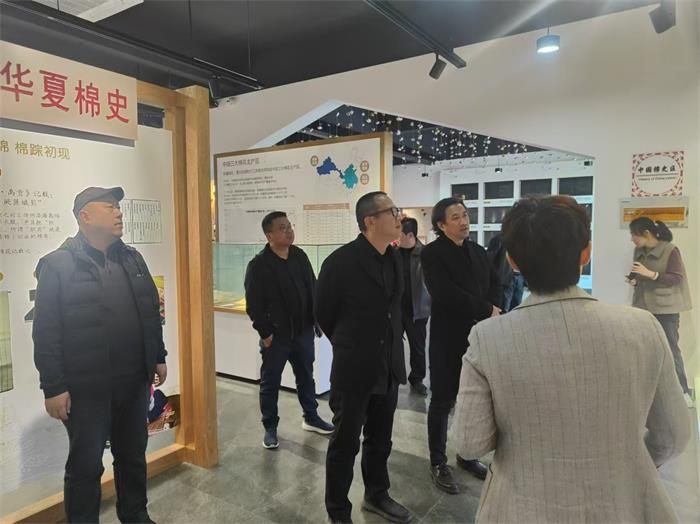 仪式结束后,一行人考察了山东齐鲁棉花博物院,深入了解作为夏津县经济发展支柱之一的棉花产业。山东鑫瑞娜家纺股份有限公司董事长贺杰向大家详细介绍了棉花的国内种植历史、产业发展态势以及科技应用场景。大家通过展品和史料,深入了解棉花的生长特性、纺织工艺以及棉花产业对夏津县经济的重要贡献。李杰院长表示山东工艺美院可以在“家居文化”溯源领域与鑫瑞娜家纺展开合作,贺杰说:“欢迎教授们常来我们厂指导工作。目前,厂子遇到了许多发展的瓶颈,希望能与工艺美院在品牌打造、产品升级等方面进行合作。”顾群业一行还调研了夏津古桑研究院和作为全球重要农业文化遗产的夏津古桑园,了解夏津当地桑产品的生产、销售以及旅游资源发展情况。