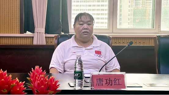 9月16日,山东省威海体育训练中心工会主席、2004年雅典奥运会举重女子75公斤以上级冠军唐功红应邀来到山东外事职业大学,与师生代表围绕体育精神和成长经历展开座谈交流。学生处处长、团委书记邹丽君主持座谈会