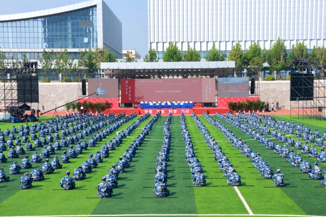 “从今天起,‘烟大人’成为我们共同的名字,我们一起携手前行,去书写烟台大学新的更大的荣光,你们是否愿意?”“未来如同面前这片大海,有风平浪静,也会有风高浪急。我们一起携手前行,无惧风雨,扬帆远航,你们是否愿意?”“个人的梦想终将汇入时代发展的江海,国家的需要就是青春奔赴的方向。我们一起携手前行,笃信明志,勤学善思,崇德修身,肩负起时代赋予的使命担当,你们是否愿意?”讲话最后,郝曙光向全体新生发起了关于归属、勇气和远方的三个约定,当“你们是否愿意”的叩问响起,新生们齐声回应“我愿意”,嘹亮的应答响彻主校区和八角湾校区上空,成为烟大青春最坚定、最滚烫的承诺。