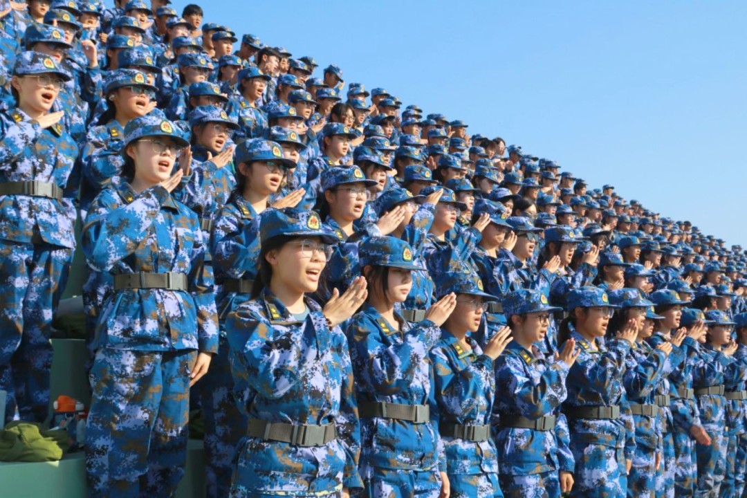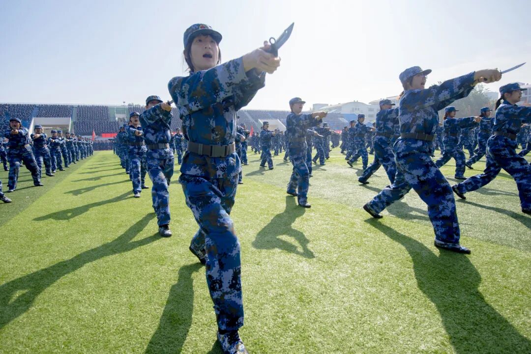 看台上,两校区歌咏方阵交替唱响《强军战歌》《祖国不会忘记》《当那一天来临》,激昂豪迈的旋律与铿锵有力的歌声交织成烟大学子的家国热忱与青春担当;绿茵场上,擒敌拳起势刚劲,一招一式尽显青春滚烫;刺杀操向前冲锋,阵阵喝声响彻苍穹绿茵;匕首操出鞘利落,刚柔并济尽展飒爽英姿,蓬勃不息的青春活力点燃全场气氛。