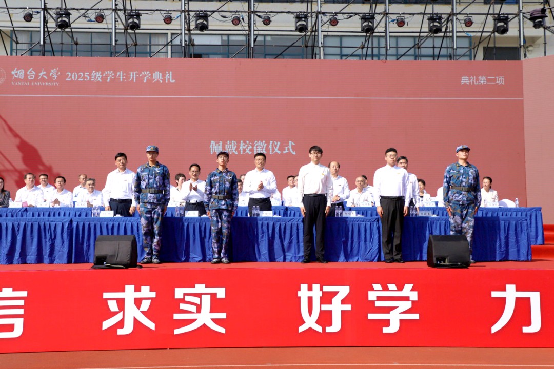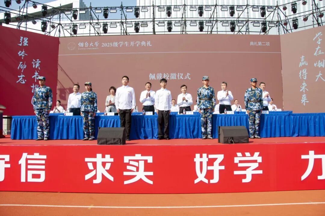 典礼上,学校领导为新生佩戴校徽,一枚枚镌刻着“烟台大学”字样的徽章轻缀胸前,传递着“守信、求实、好学、力行”的校训内涵,凝聚着“海纳百川、敢为人先”的烟大精神,标志着新生们正式成为“烟大人”。