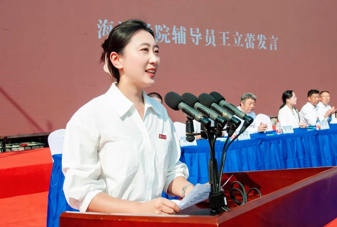辅导员代表、海洋学院王立蕾老师结合自身工作经历,表示愿做学子们思想的领航者、学业的帮扶者、困惑时的倾听者、青春路上的同行者。