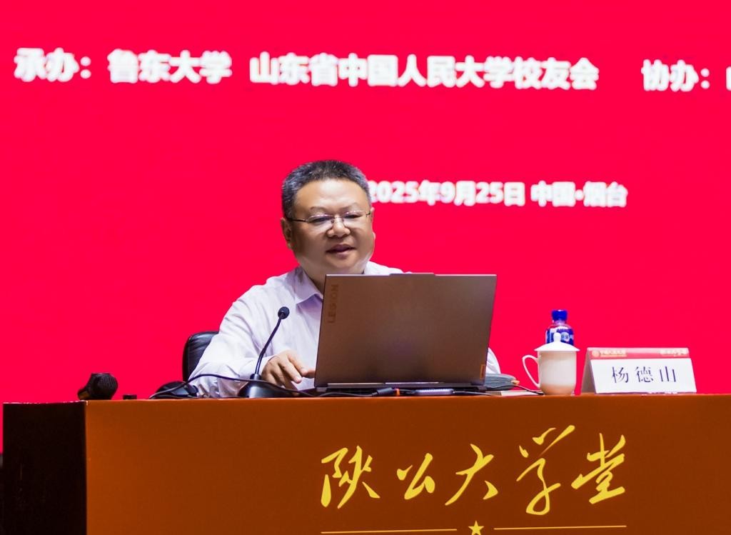 2025年9月25日,由中国人民大学主办,山东省中国人民大学校友会与鲁东大学联合承办的“陕公大学堂”公益讲座在鲁东大学举办。中国人民大学校友、复旦大学特聘教授杨德山应邀作《高校红色文化传播与中共党史课教学》专题报告。鲁东大学党委常委、组织部部长吴旺宗出席活动。
