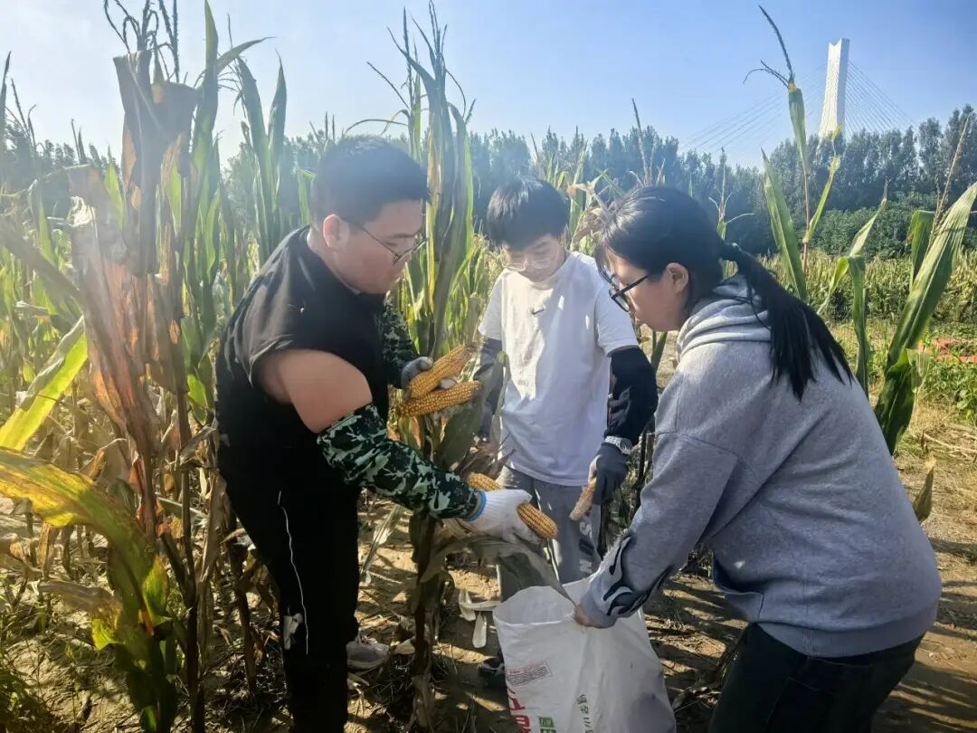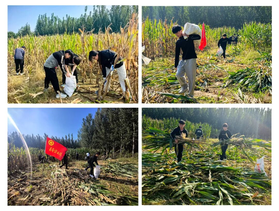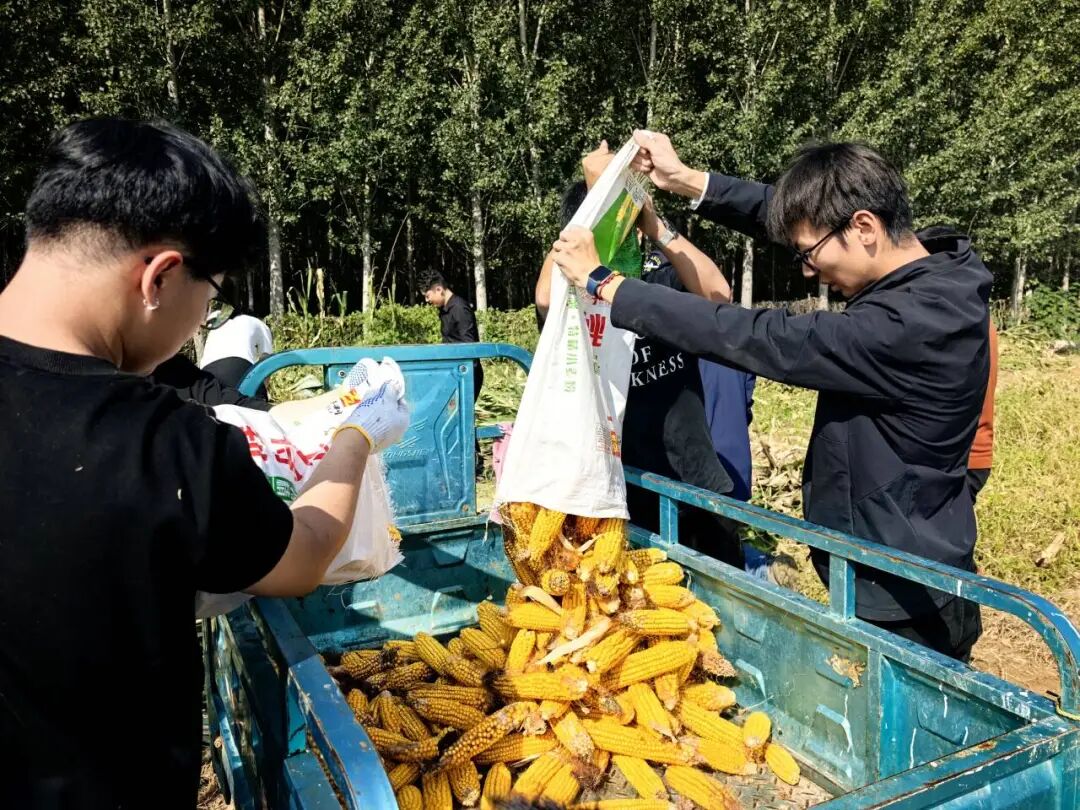 一位农户说道“这些孩子太能吃苦了!从早上到现在没歇过,饭都是在地里随便扒拉两口。”连续的劳作使得同学们腰酸背痛,但大家始终坚守岗位。最终,青年突击队高效完成7亩玉米抢收及仓储任务,切实为农户守住了“粮袋子”。