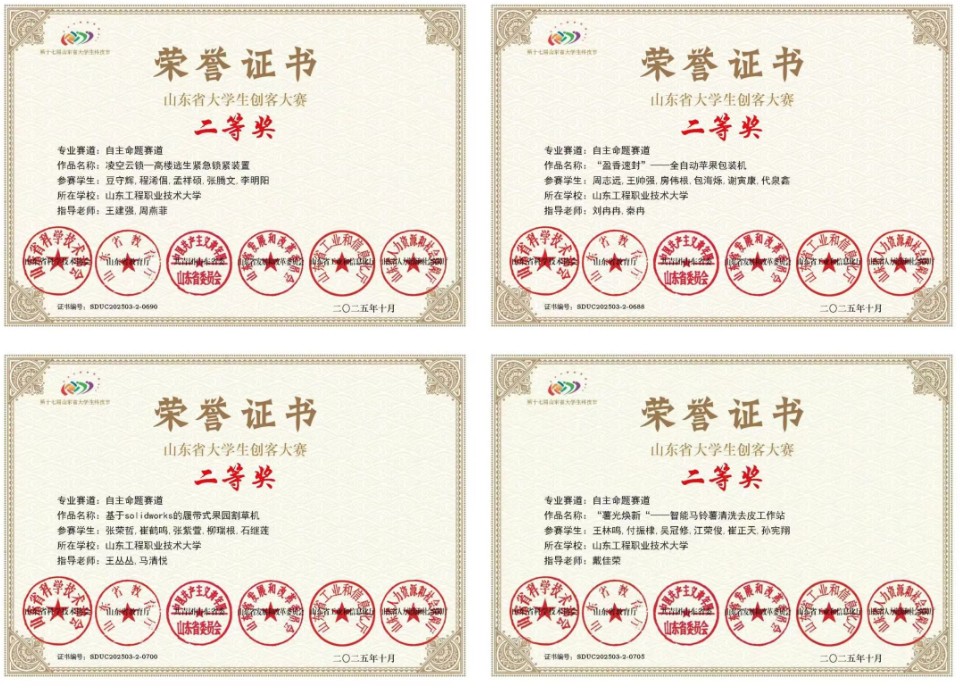 近日,山东工程职业技术大学参赛团队在 “未来领袖杯”第十届山东省大学生创客大赛中捷报传来,一举斩获9项省级一等奖、19项省级二等奖、36项省级三等奖,总计64项省级奖项,充分展现了学子扎实的专业技能和出色的创新能力以及学校深化教学改革、注重实践育人的丰硕成果。