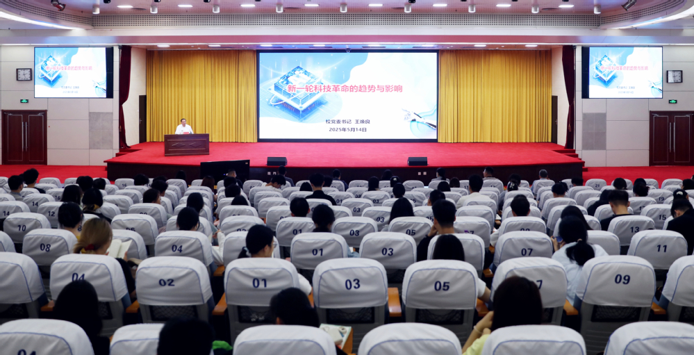 5月14日下午,学校党委书记王焕良以《新一轮科技革命的趋势与影响》为题,在沂蒙大讲堂三楼报告厅为学生讲授专题思政课。