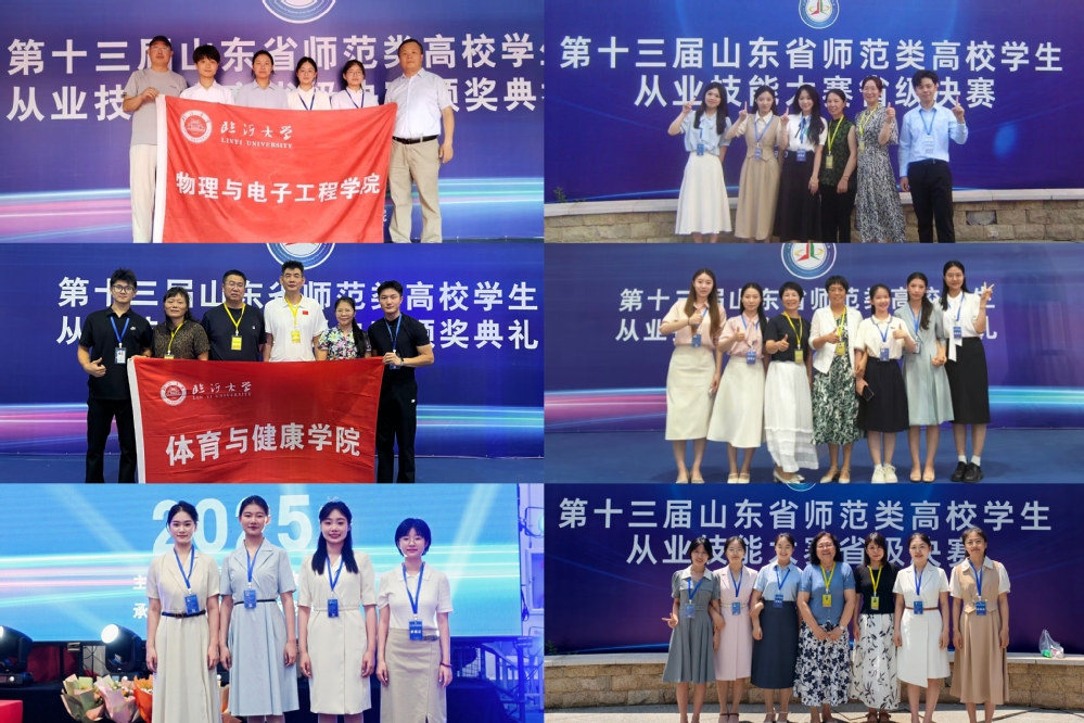 7月16日至20日,由山东省教育厅主办的第十三届山东省师范类高校学生从业技能大赛在齐鲁师范学院举行。临沂大学学子凭借扎实的专业素养和出色的教学技能,在比赛中表现优异,邵晓玉等15名同学获一等奖,陈晓楠等13名同学获二等奖,陈孜婷等19名同学获三等奖,王学慧等16名教师获优秀辅导教师奖,学校获得团体铜奖和优秀组织奖。