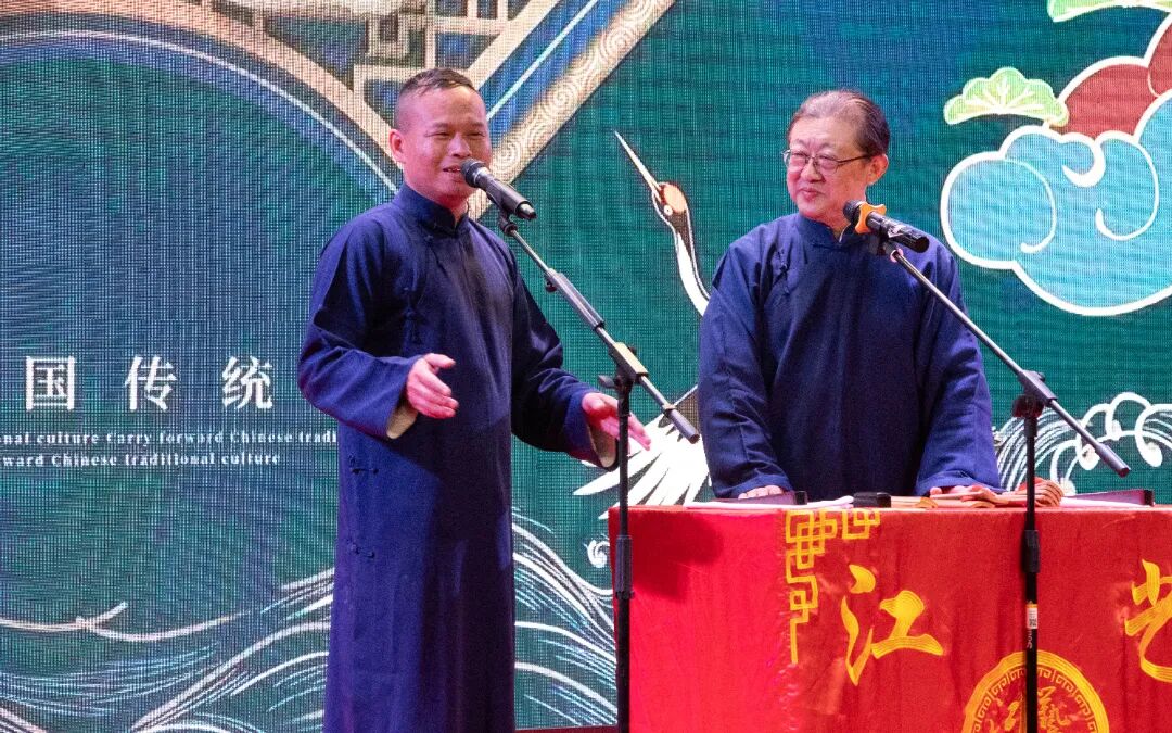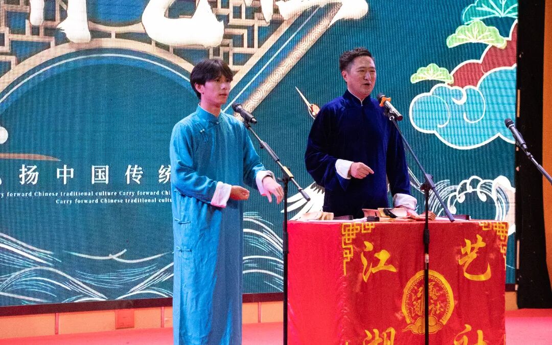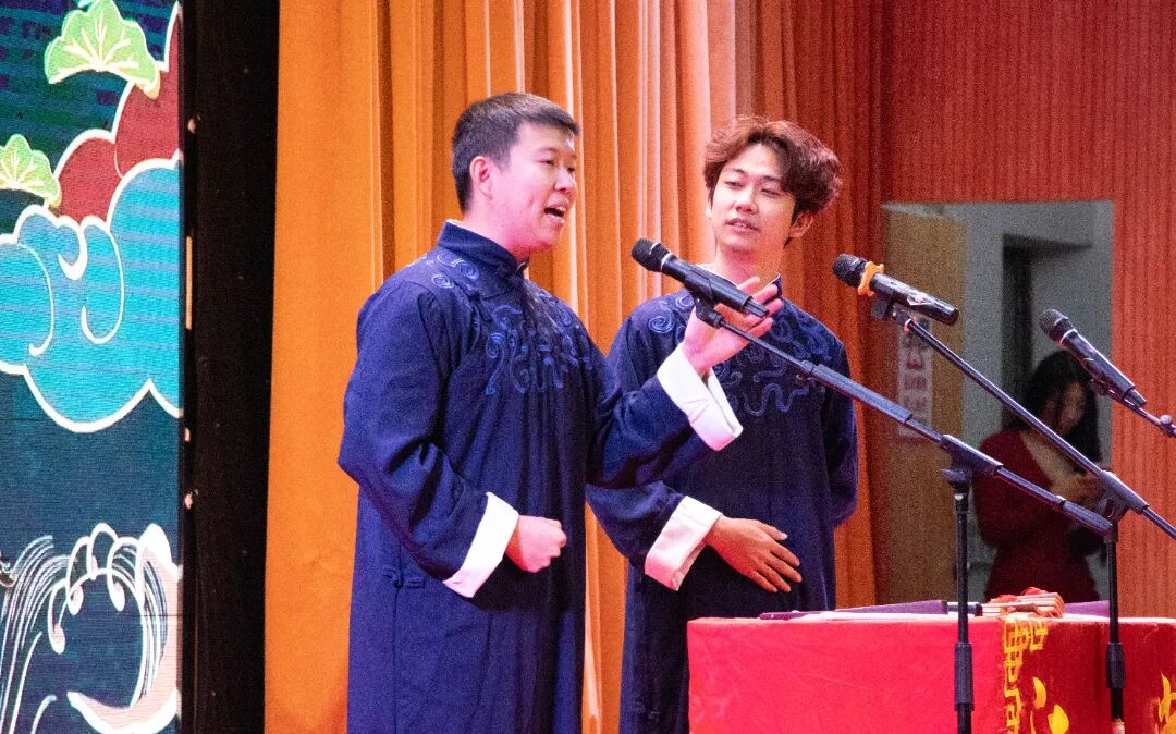 学校大学生艺术团学生代表带来的对口相声《我的女朋友》,则让现场师生感受到校园曲艺社团的活力与风采,道出了当代大学生的青春心声。