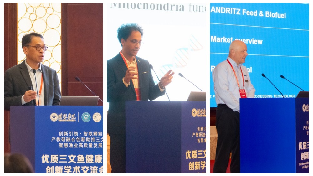 会上,中国科学院水生生物研究所研究员、国家杰青、水产品种创制与高效养殖全国重点实验室主任徐镇教授,挪威北极圈大学刘雅杰教授,挪威斯塔万格大学教授张登军教授,四川农业大学动物科技学院副院长杨淞教授,安德里茨集团(ANDRITZ GROUP)技术总监冈纳·哈尔曼(Gunnar Hallmann)先生,上海海洋大学罗国芝教授作主旨报告。中科院水生所、华中农业大学、挪威北极圈大学、康奈尔大学、安德里茨集团、上海海洋大学等国内外优秀的科研院所的专家学者,围绕三文鱼健康养殖的前沿科技与产业实践,带来了精彩纷呈的专题报告。