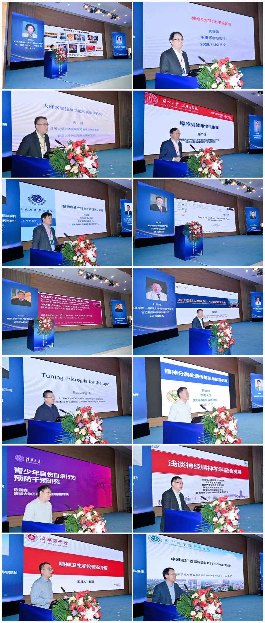 新加坡国立大学的封磊教授通过线上方式,介绍了“Cognitive decline in Chinese: from observation to intervention”的研究成果,为认知功能下降的干预策略提供了新思路。瑞典卡罗林斯卡医学院的仇成轩教授(线上)分享了“中国-瑞典联合创建的研究老年脑健康的大型数据库资源”,为老年脑健康研究提供了宝贵的数据支持。山东省立医院神经内科主任,泰山学者特聘专家、济宁医学院1978级校友杜怡峰教授基于MIND-CHINA队列,详细阐述了痴呆防治的证据与实践。中国科学院干细胞与再生医学创新研究院院长、教育部长江学者、济宁医学院1990级校友胡宝洋教授探讨了“Tuning microglia for therapy”,为神经疾病治疗开辟了新途径。东南大学生命健康高等研究院,国家杰出青年基金获得者罗雄剑教授通过基因层面分析,揭示了精神分裂症的遗传病因及潜在治疗靶点。清华大学万科公共卫生与健康学院特别研究员、国家优秀青年基金获得者陈润森教授研究了“青少年自伤与自杀行为的预防干预”,为青少年心理健康保护提供了科学依据与实用建议。北京大学第六医院神经内科主任,济宁医学院2001级校友袁俊亮教授分享了神经精神学科融合发展的初步经验,为学科交叉融合提供了有益借鉴。济宁医学院的郁昊教授回顾了学校精神医学学科的发展历程,展现了学校在该领域的深厚积淀与辉煌成就。济宁医学院附属医院的王玉忠教授介绍了中国吉兰-巴雷综合征GBS-CORE研究的相关情况,为该领域的研究提供了新的方向。
