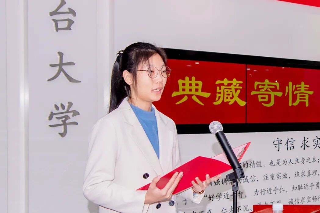 沈正华深情回忆了父亲治学育人的一生以及与烟台大学的深厚情缘。她谈到,沈先生一生酷爱读书、潜心治学,这些藏书是先生深耕学术、躬耕教育的见证,更是他精神品格的具象化体现。“父亲始终牵挂烟台大学的发展,牵挂青年学子的成长,将这些书籍捐赠给烟园,既是完成父亲的心愿,也希望能为学子们搭建更广阔的知识桥梁。”沈正华老师的话语朴实而真挚,让在场师生深受触动。