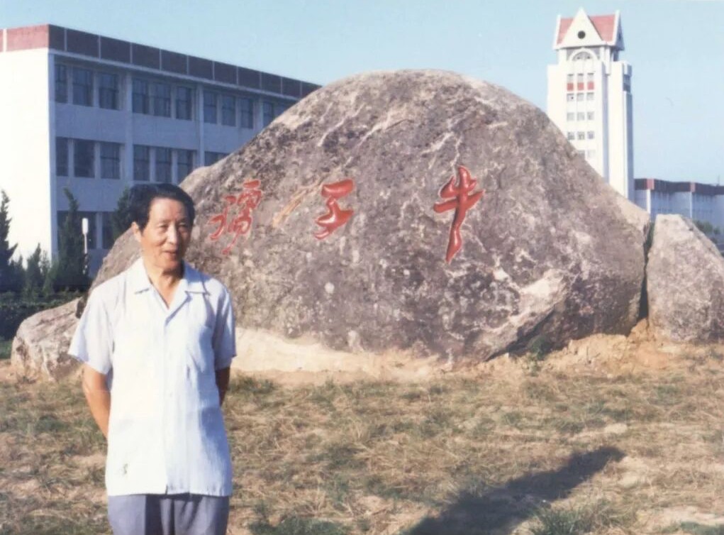 1990年8月,首任校长沈克琦在孺子牛石前留影