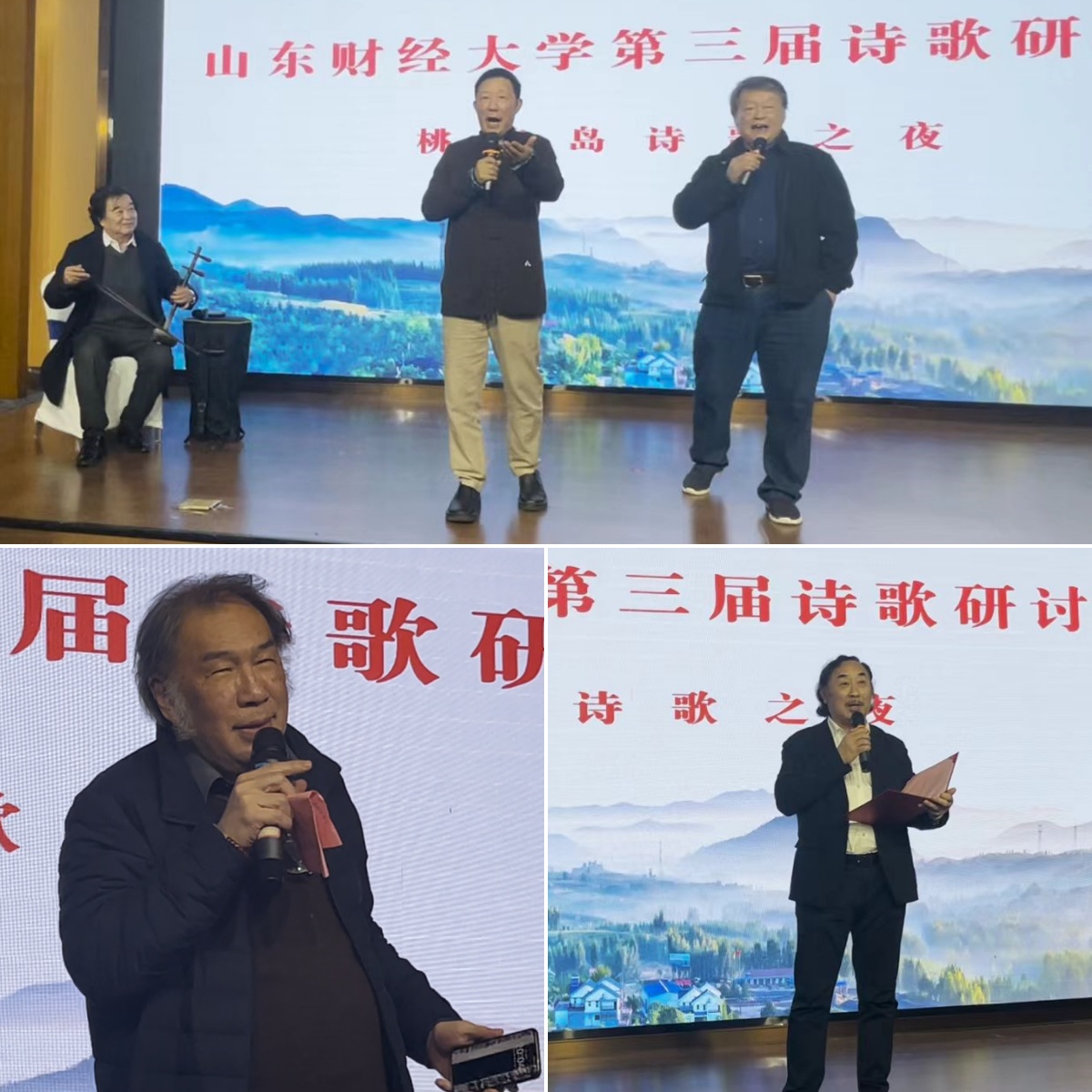 晚上,在山东财经大学乡村振兴学院举行了“桃花岛诗歌之夜”活动,诗人、学者、文学爱好者欢聚一堂,朗诵诗歌,诗情澎湃。