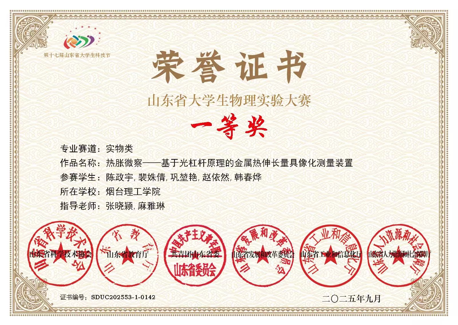 近日,山东省第十七届大学生科技节——山东省大学生物理实验大赛在烟台大学圆满落幕,烟台理工学院信息工程学院获省级一等奖1项、省级三等奖2项。