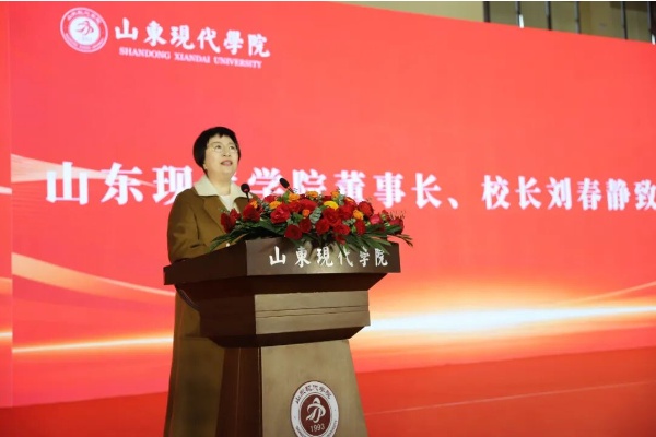 学校董事长、校长刘春静致开幕词,回顾了学校从租赁办学到建成千亩现代化校园的奋斗历程。32年来,学校始终秉持“天道酬勤”的校训,坚持“立德树人、知行合一”的育人理念,为社会培养近10万名应用型人才,凝聚着一代代“现代人”的心血与汗水。站在新起点,学校将持续优化学科专业布局,加强高水平师资队伍建设,一如既往地改善办学条件、汇聚优秀人才,为师生创造更好的学习生活环境,全面提升应用型人才培养质量,让现代品牌更加闪亮,创建高水平应用型大学,为地方经济社会发展做出更大贡献。