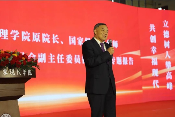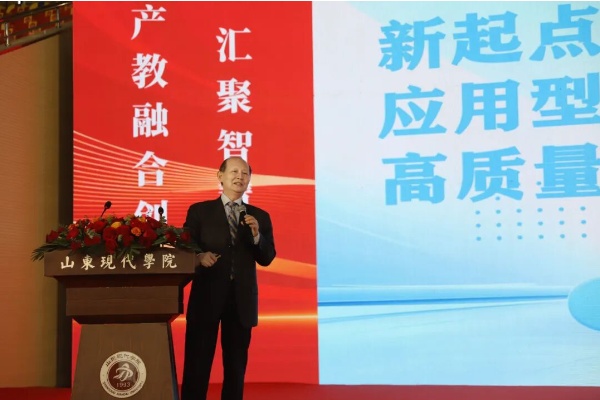 鲁商集团原党委常委、董事,组织人力资源部部长,山东省产教融合促进会执行会长李林致辞,他对现代学院的未来发展提出三点期望:深化产教融合,在构建校企命运共同体上实现新突破;聚焦协同育人,在提升人才供给质量上展现新作为;增强服务效能,在贡献区域经济社会发展上作出新贡献。最后,他祝愿学校在新起点上不断迈向更高水平。