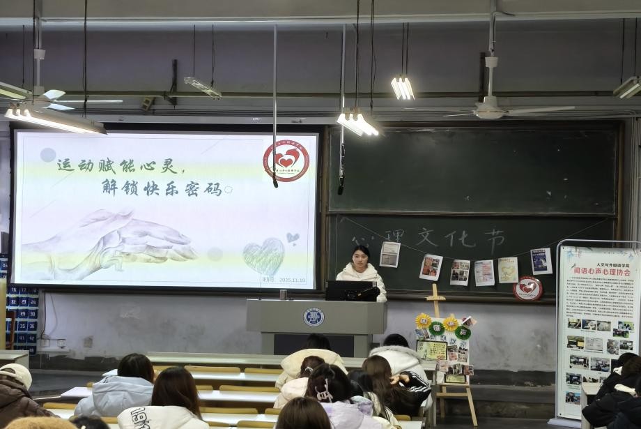 为满足学生多样化心理需求,学校创新推出沉浸式心理体验活动,凭借新颖有趣的形式成为最受学子欢迎的板块。心理中心在学生社区开展 “正念冥想 芳香疗愈”主题活动,邀请校内有近10年精油使用经验的侯韵参与知识讲解、创意手作、疏压工坊和正念冥想等体验活动,伴着舒缓音乐与淡雅香氛,学生们在指导下调整呼吸、放松身心,“紧绷的神经终于舒展了,这种宁静的感觉特别珍贵”,参与活动的学生岳千惠分享道。此外,机械与汽车工程学院阳光雨露心理协会以“润心逐光,笃行致远” 为主题举办心理主题脱口秀,将心理知识融入幽默段子,回顾年度成果、规划未来方向;人文与外国语学院闻语心声心理辅导站推出“运动赋能心灵,解锁快乐密码”主题团辅,通过趣味竞技释放压力,多样化活动形式让心理调适变得生动有趣。