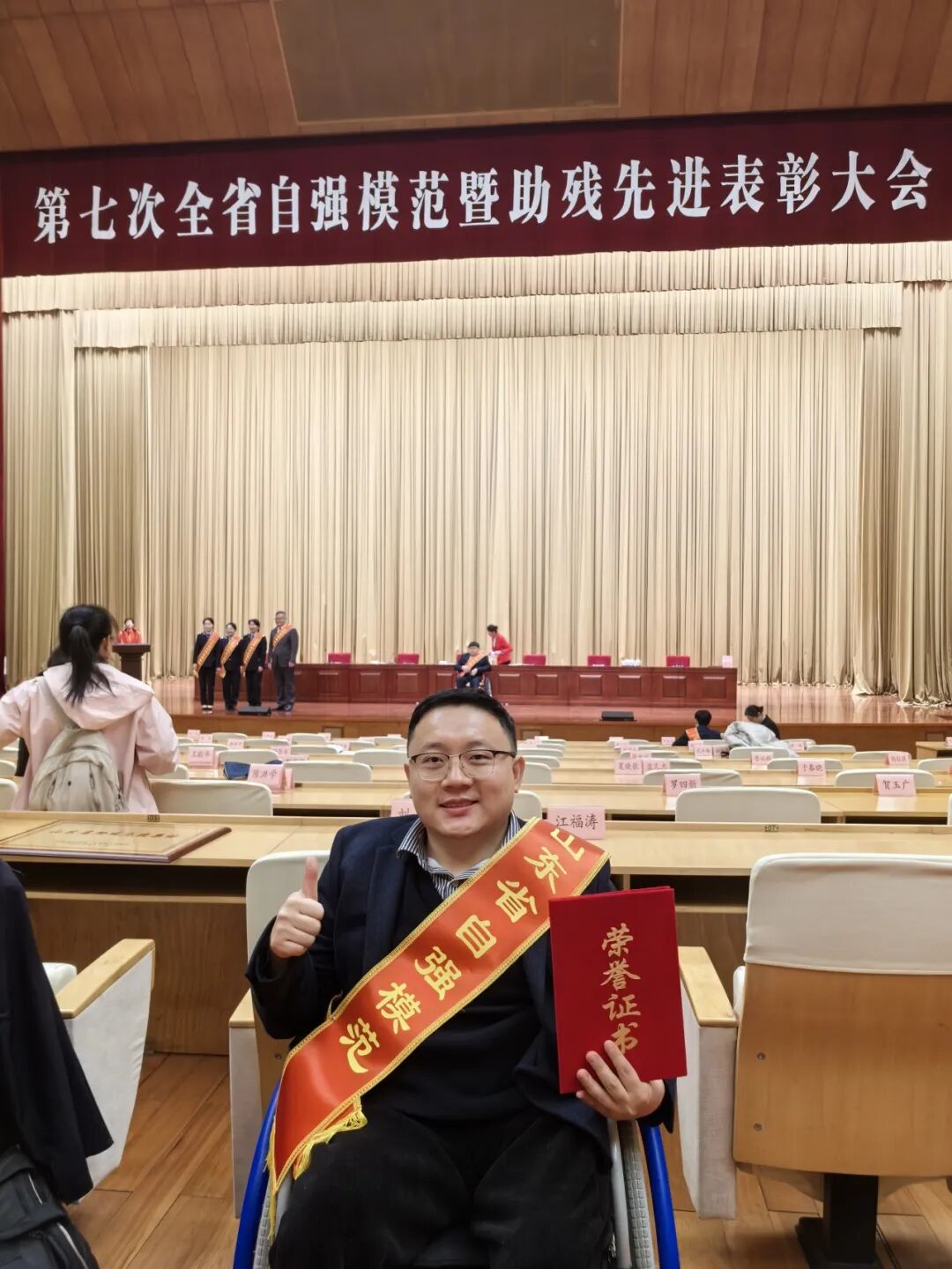 11月27日上午,第七次全省自强模范暨助残先进表彰大会在济南召开。会前,省委书记林武同与会代表合影,代表省委、省人民政府,向受表彰的全省自强模范和助残先进表示热烈祝贺,向广大残疾人及其亲属、残疾人工作者致以诚挚问候。省委常委、组织部部长周立伟出席会议并讲话。大会对10名自强模范、60个助残先进集体和20名助残先进个人进行了表彰。滨州医学院特殊教育与康复学院教师刘杨被授予“山东省自强模范”称号。