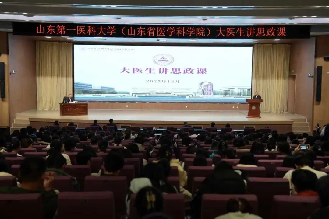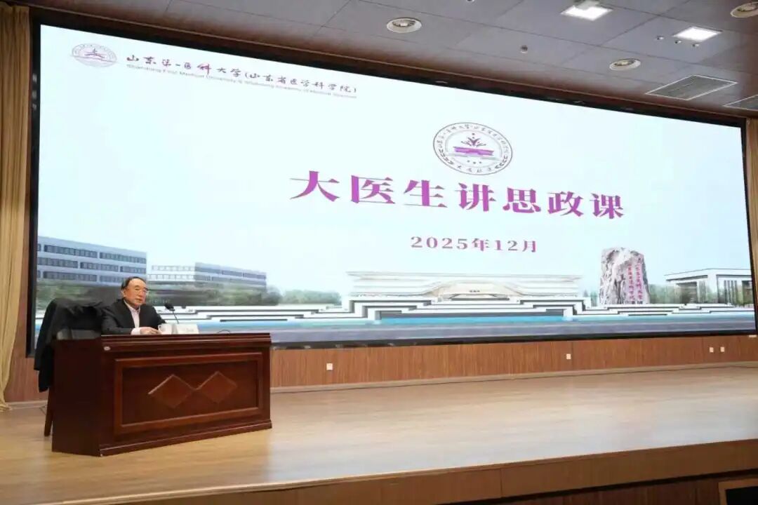 为深入推进思政教育与医学专业教育深度融合,引导山一大青年学子厚植家国情怀、涵养医者仁心,12月1日,山东第一医科大学(山东省医科院)举办“大医生讲思政课”报告会。中国工程院院士、名誉校(院)长、附属肿瘤医院院长于金明,应邀为青年学生讲授题为《立鸿鹄之志 做足下文章》的专题报告。校(院)党委副书记王宇轩主持报告会。