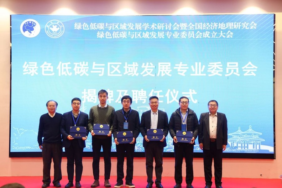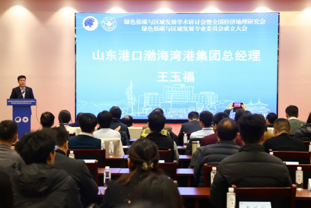 在与会领导嘉宾的共同见证下,张可云与来逢波为“全国经济地理研究会绿色低碳与区域发展专业委员会”揭牌,会上还同时揭牌成立了学校与山东港口渤海湾港集团共建的“智慧绿色港口研究院”。孙久文、张可云为专委会首批受聘专家颁发聘书,这标志着全国经济地理研究会绿色低碳与区域发展专业委员会正式落户学校并启动运行,将为相关领域的学术交流与协同创新提供面向全国的高层次交流与研究平台。