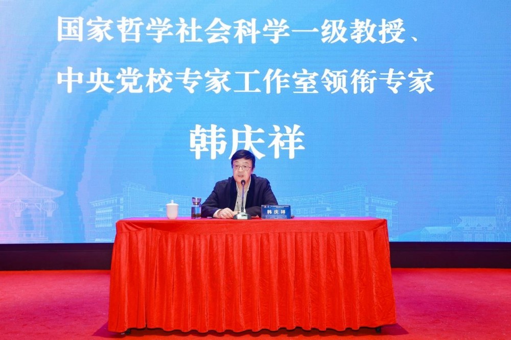 主旨报告环节,国家哲学社会科学一级教授、中央党校专家工作室领衔专家韩庆祥,国家“万人计划”教学名师、教育部高等学校思想政治理论课分教学指导委员会委员、南京师范大学二级教授王刚,中国辩证唯物主义研究会城市哲学研究分会会长、苏州大学教授庄友刚,山东省泰山学者特聘专家、中国石油大学(华东)马克思主义学院院长、二级教授张瑞涛,中国辩证唯物主义研究会城市哲学研究分会副会长、山东师范大学二级教授贾英健,国土空间生态修复山东省工程研究中心主任、山东建筑大学二级教授崔东旭6位专家围绕中国城市发展中的物本逻辑与人本逻辑、党的二十届四中全会精神融入思政课教育教学、现代化人民城市的历史唯物主义叙事、城市规划百年回顾与人民城市建设的思考等主题作深入阐述。