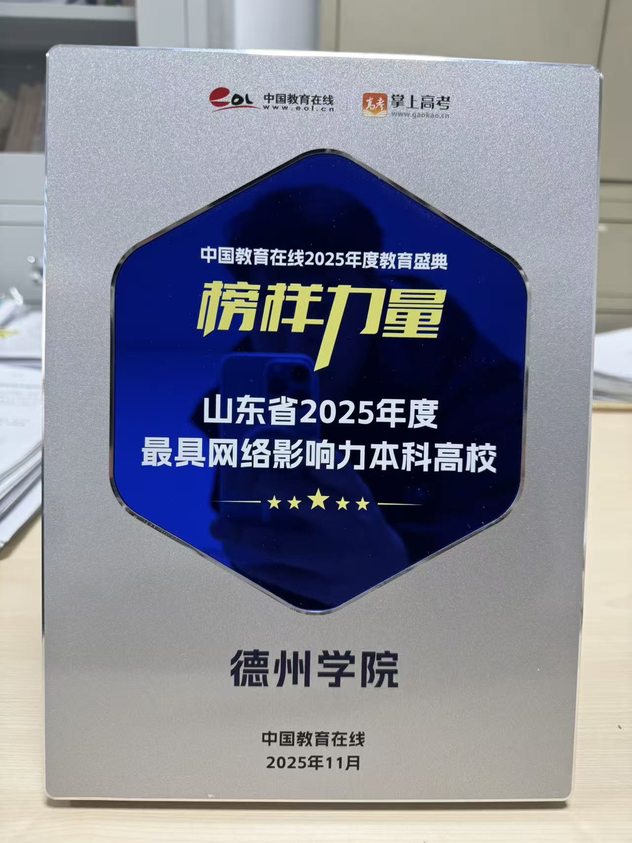 近日,中国教育在线“榜样力量·2025年度教育盛典”优秀案例名单公布。德州学院凭借极具创新性与前瞻性的招生宣传策略,以及扎实过硬的宣传执行实力,从众多高校中突围,获评“2025年度最具网络影响力本科高校”。