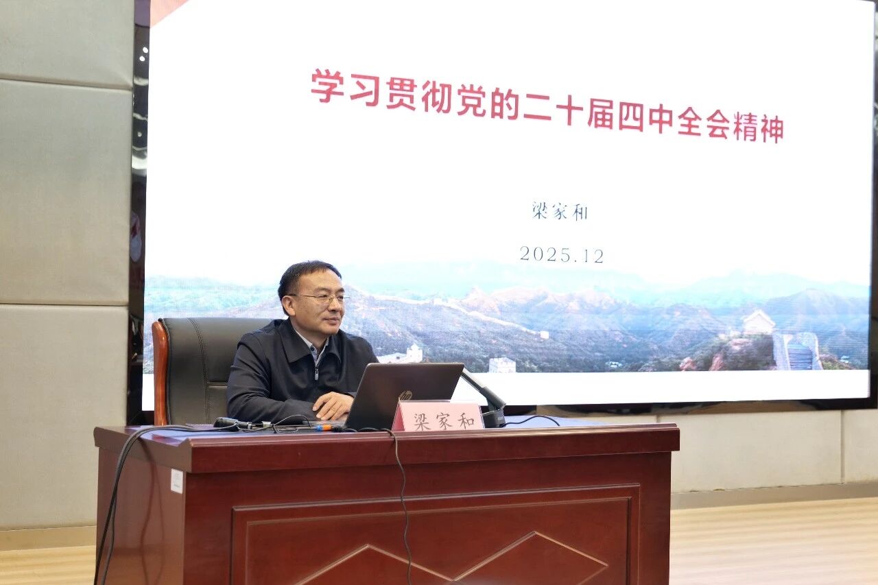 12月12日,枣庄职业学院党委副书记、院长梁家和为师生作党的二十届四中全会精神宣讲报告。学院机关第二党支部、化工与制药系党支部党员,思政课教师代表以及2025级机电一体化技术、人工智能技术应用、建筑消防技术等专业学生代表参加报告会。