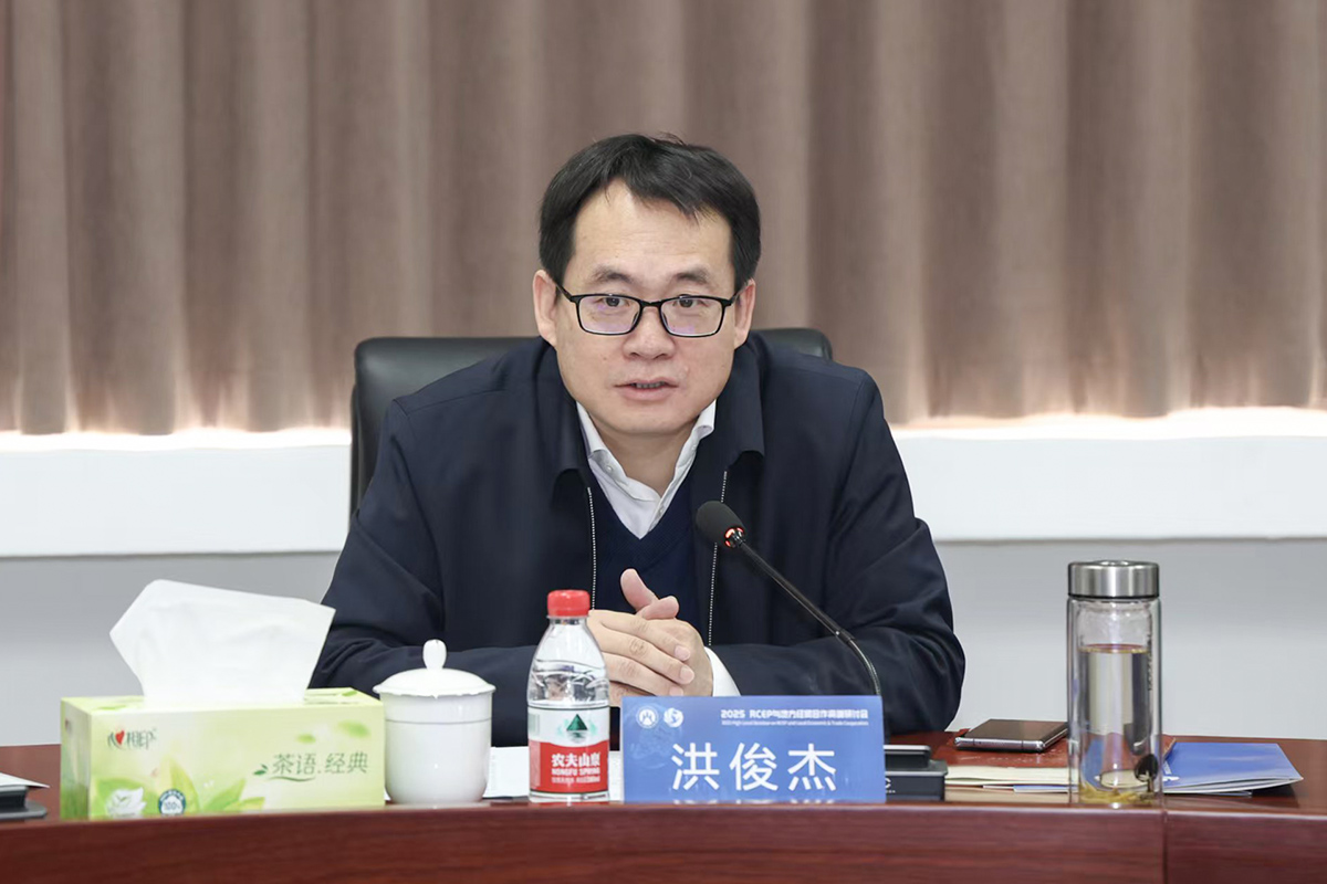 洪俊杰向与会嘉宾表示欢迎,并介绍了学校的办学历史、基本情况和特色优势。他表示,作为一所扎根齐鲁、服务国家开放战略的省部共建高校,学校发展始终与国家战略和区域发展同频共振,连续五届举办“RCEP与地方经贸合作高端研讨会”,精准服务山东省开放型经济高质量发展。今年是RCEP正式生效第五年,更是中国“十五五”规划谋篇布局的关键之年。在此背景下,举办本届会议恰逢其时、意义深远。期待与会专家围绕会议主题深入研讨,为更好服务中国式现代化建设,推动区域经贸合作、文化交流迈上新台阶建言献策。