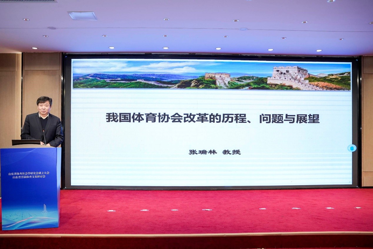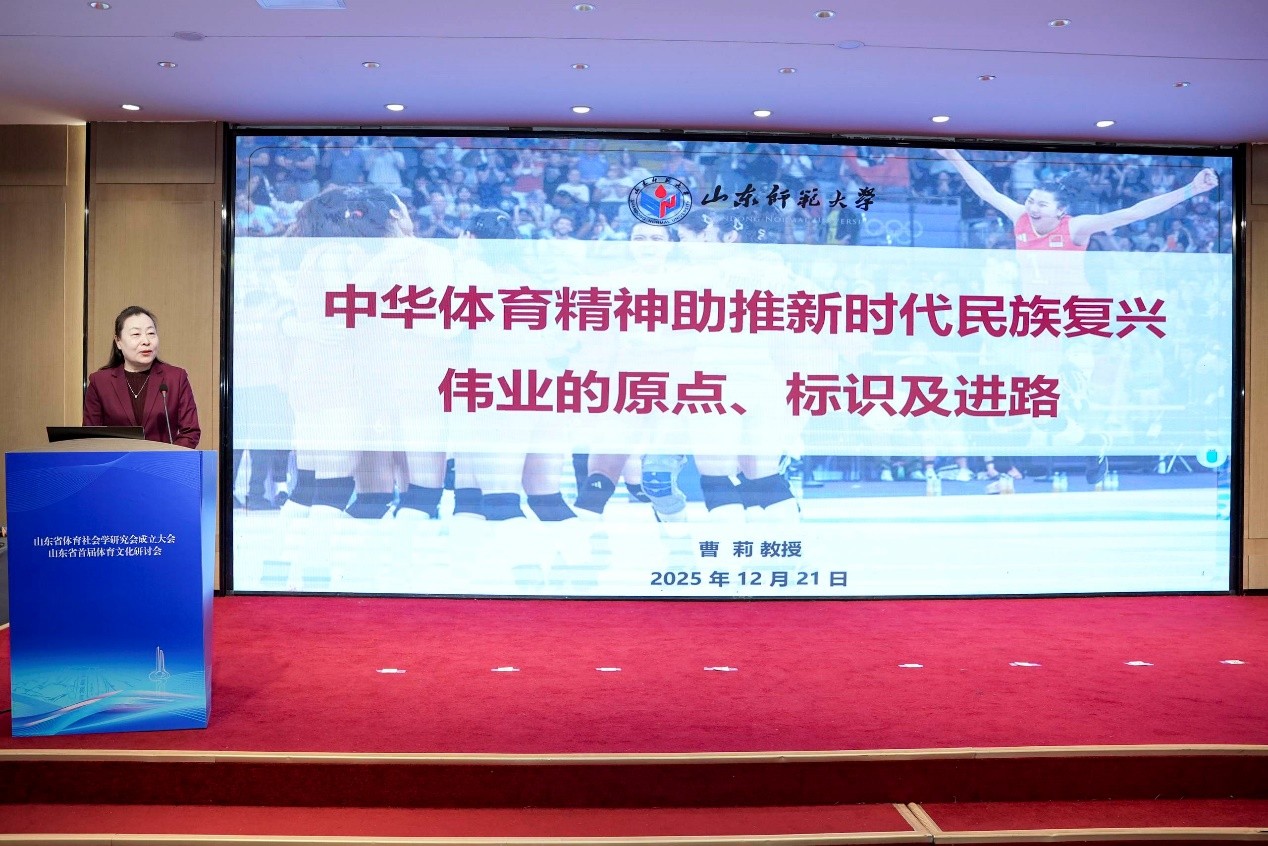12月22日,由山东体育学院承办的山东省体育文化与社会学学术研讨会在泉城济南圆满召开。山东省委宣传部、省体育局相关领导,以及来自全省高校和相关单位的专家学者、会员代表共100余人出席会议。研讨会以“传礼彰文・体耀齐鲁”为主题,设置学术报告、专题研讨等多个环节,围绕“体育文化赋能强省建设”“赛事文明涵养社会新风”等内容展开深度交流。