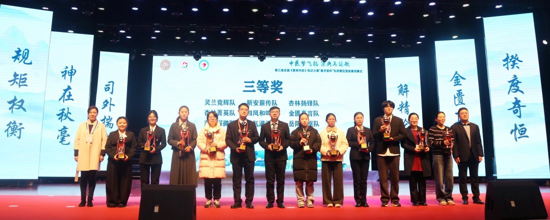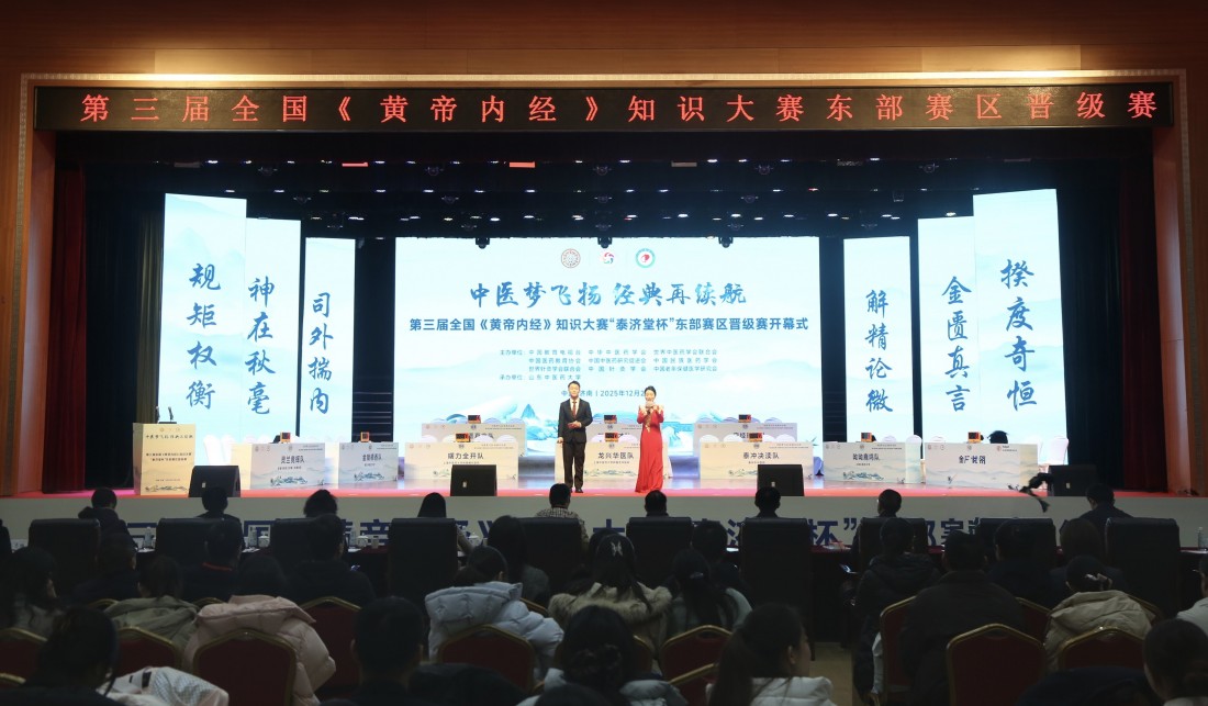 12月24日,由全国《黄帝内经》知识大赛组委会主办、山东中医药大学承办的第三届全国《黄帝内经》知识大赛东部赛区晋级赛在山东中医药大学长清校区岐黄礼堂举办。全国《黄帝内经》知识大赛组委会执行秘书长刘务乾,山东省教育厅高教处处长曾宪文,山东省卫健委中医药科教处处长牛晖,山东中医药大学校长李可建,泰济堂中医药集团有限公司董事长杜力,山东中医药大学副校长王琳、张玉龙出席大赛活动。