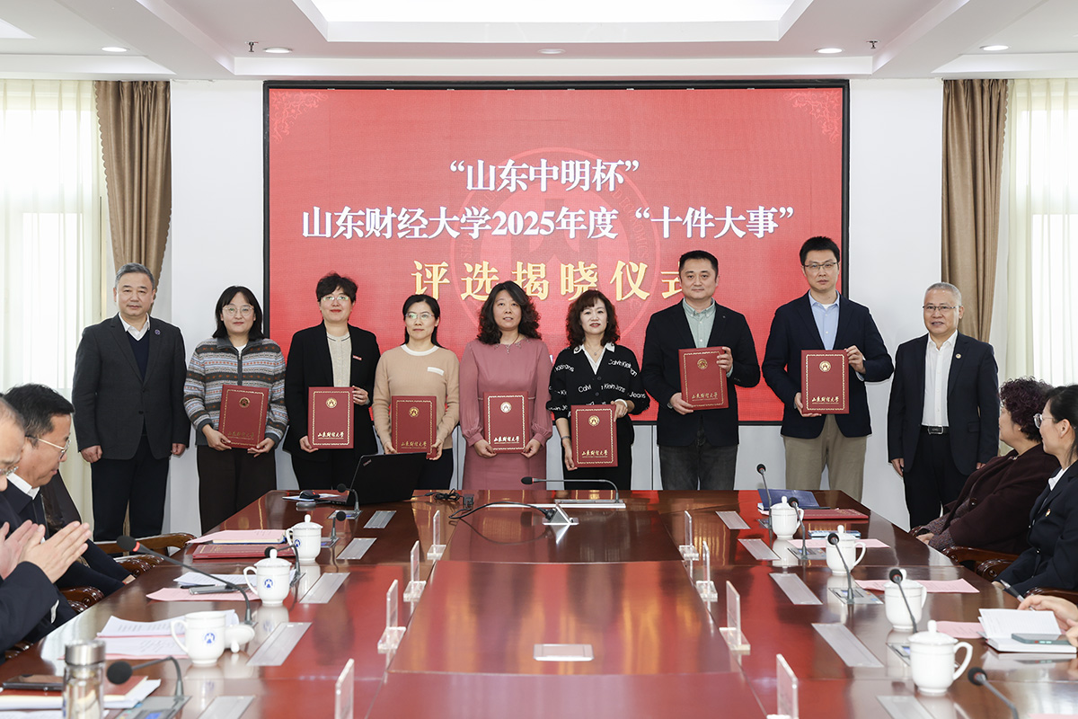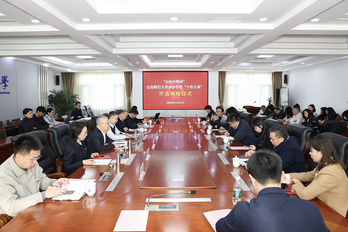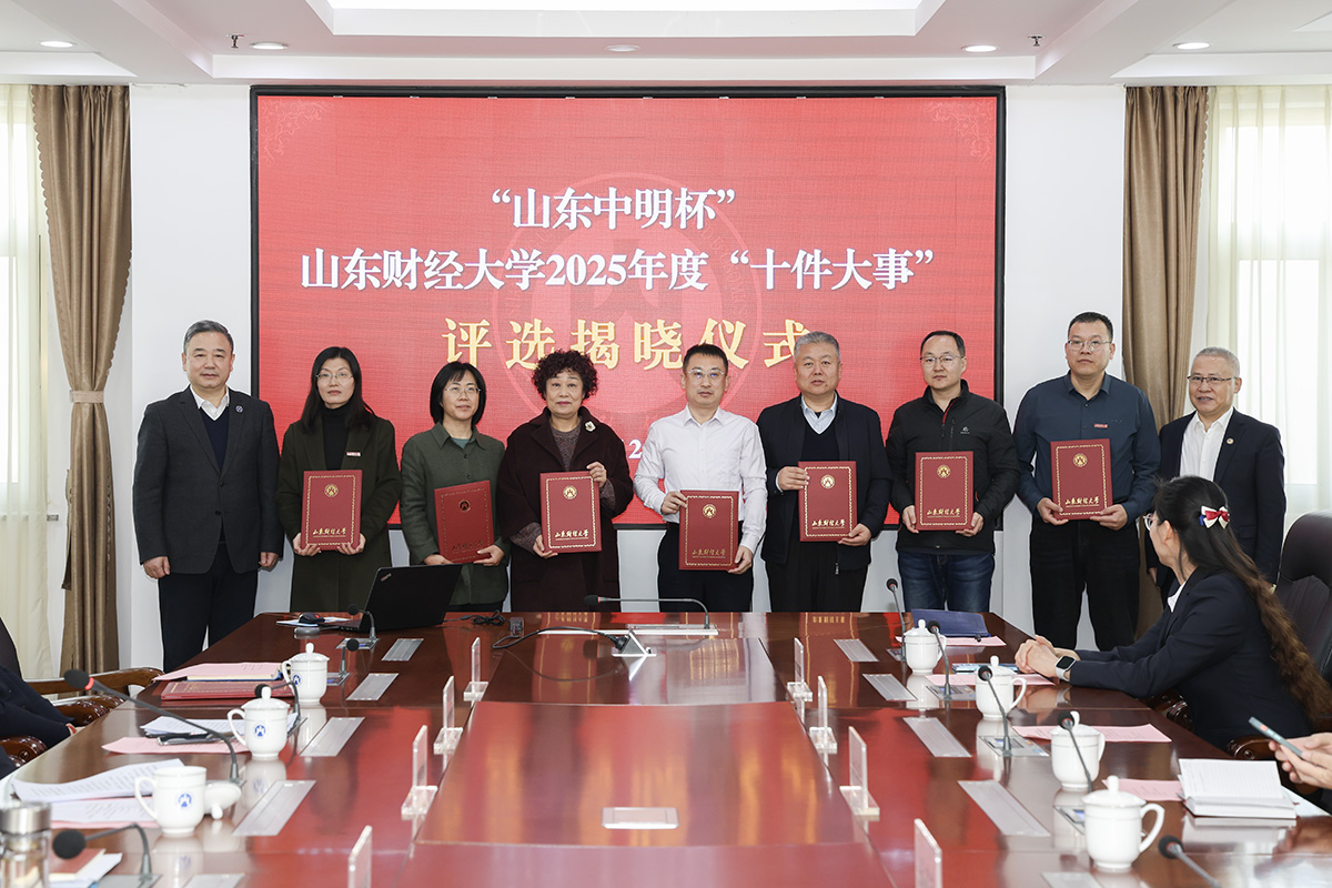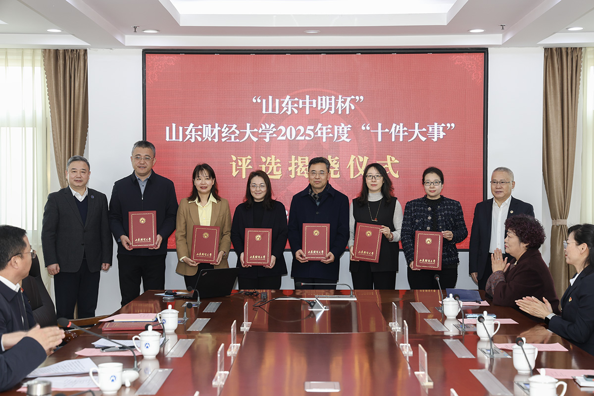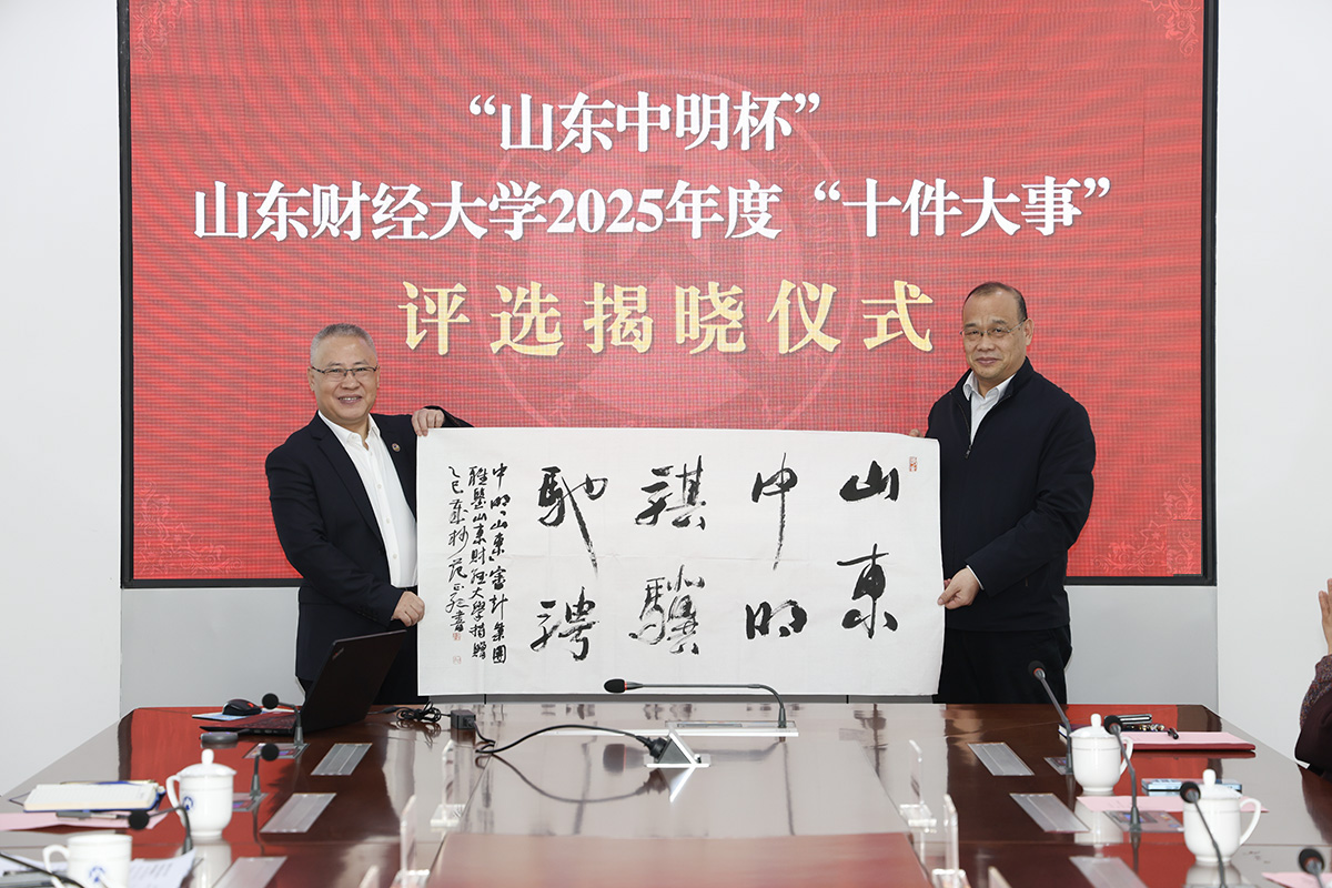 经年见证学校发展新气象,母校牵手校友十载成品牌。12月31日上午,山东财经大学燕山校区办公楼七楼会议室暖意融融,当大屏幕定格2025年度山东财经大学“十件大事”评选结果时,现场响起热烈的掌声。这场由校友企业中明(山东)审计集团(以下简称中明集团)自2016年起至今连续十年赞助冠名的评选,早已从简单的年度盘点升华为山财大极具标识度的文化盛宴。