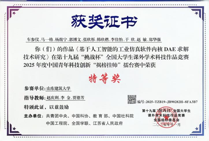 在山东建筑大学理学院,科技创新不再是少数人的竞技场,而成为浸润着匠心与专注的育人土壤。2025年,学院不仅在全国“挑战杯”“国创赛”等顶级赛事中斩获历史性突破,更将一股沉稳执着、精益求精的“工匠精神”深植于科创育人的全过程,