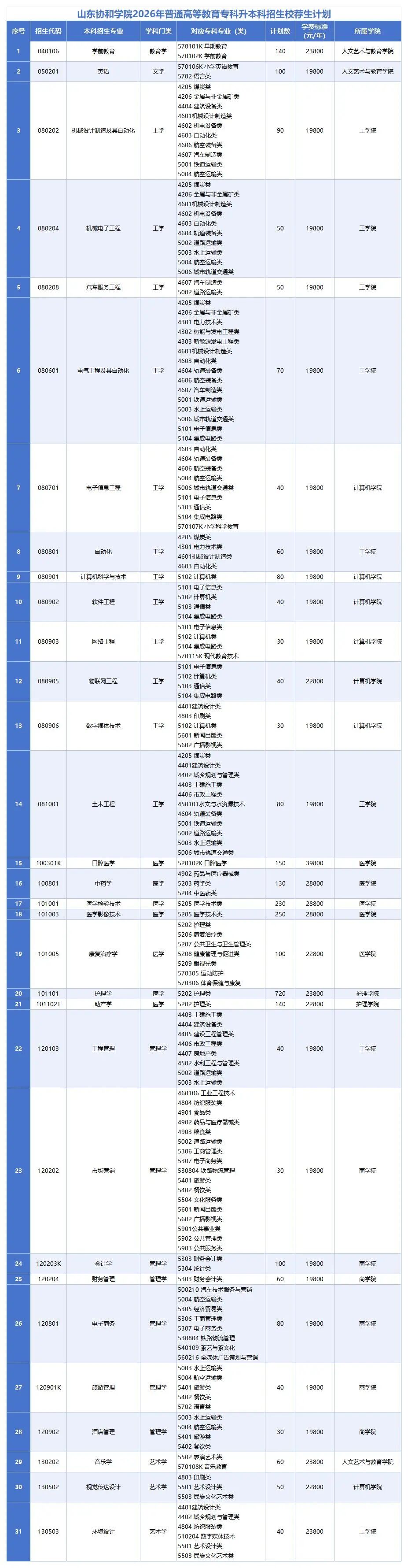 山东协和学院2026年专升本招生简章