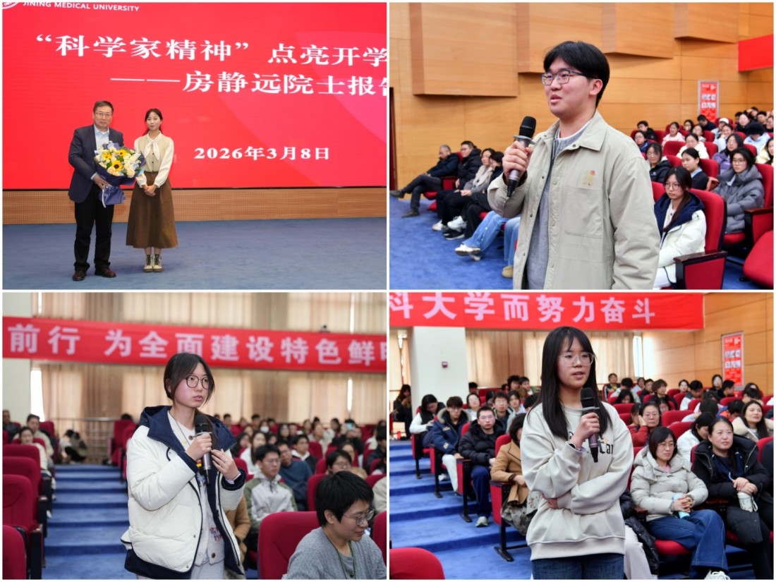 济宁医学院临床医学院学生冯钿驭表示,聆听房院士的报告让我倍受鼓舞。作为新时代大学生,我们应努力学好理论知识,不断提升自身专业素养,积极参加实践和科研训练,用实际行动传承和弘扬科学家精神,为医学事业的进步和发展添砖加瓦。